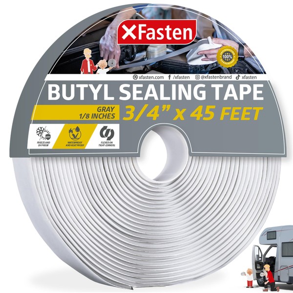 XFasten Butyl Seal Tape Gray - 1.5” Core 1/8" x 3/4'' x 45 Foot, EDPM Butyl Putty Tape, Sound Dampener Automotive Butyl Tape RV, Butyl Rubber Sealant, Waterproof Butyl Sealing Tape