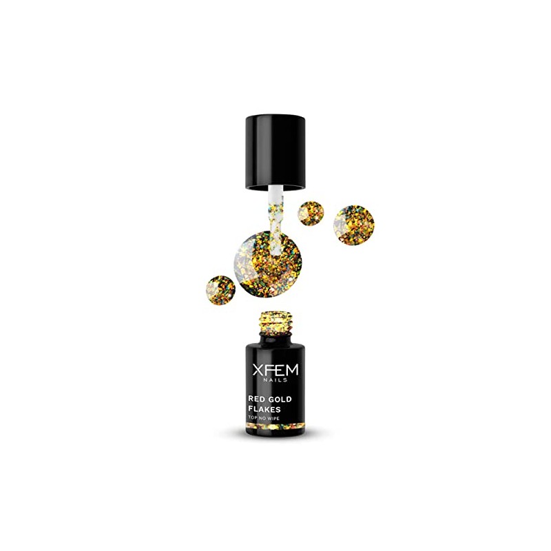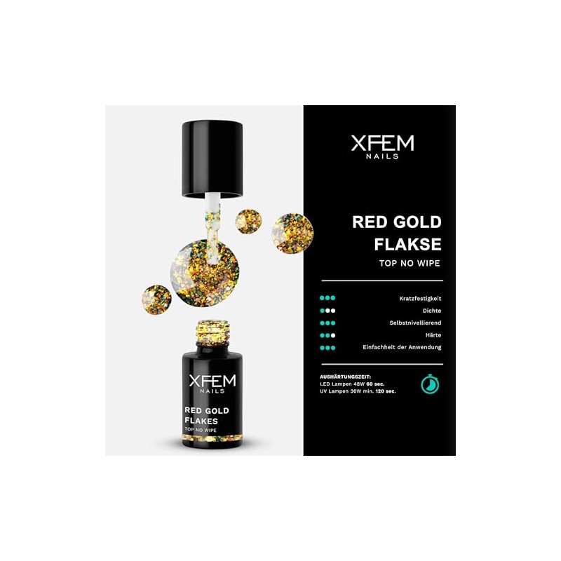 XFEM Überlack UV LED Gellack Gel Nagellack, Top No Wipe (6ml, Red Gold Flakes)