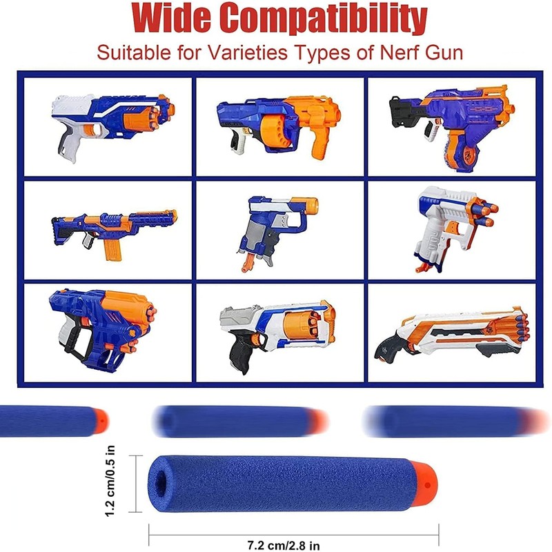 - Universal all models: our excellent toy gun foam darts have the perfect dimensions (7.2 x 1.2 cm) and are compatible with the Nerf N-Strike Elite Rampage/Retaliator Series blasters as well as practically all other Nerf pistols. Nerf Elite 2.0.