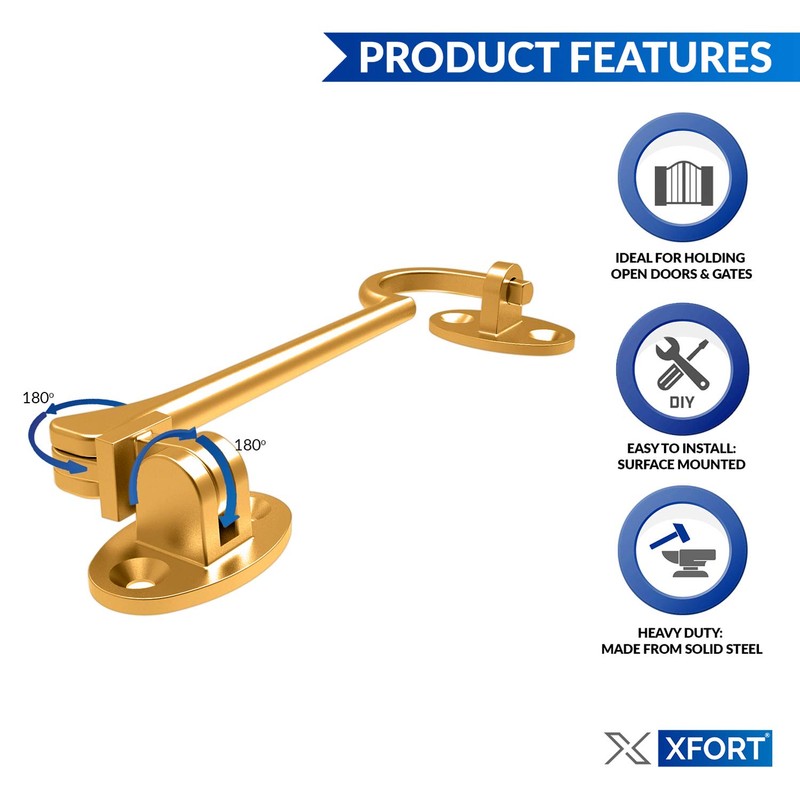 XFORT® 150mm Brass Cabin Hook, Gate Latch, Door Latch, Door Hook, Hook and Eye Latch, Cabin Hook, Gate Hook, Hook and Eye, Garden Gate Latch, Door Catch, Gate Latches, Door Hook and Eye Latch