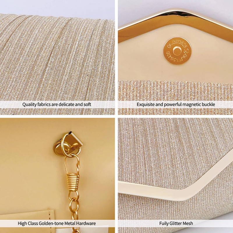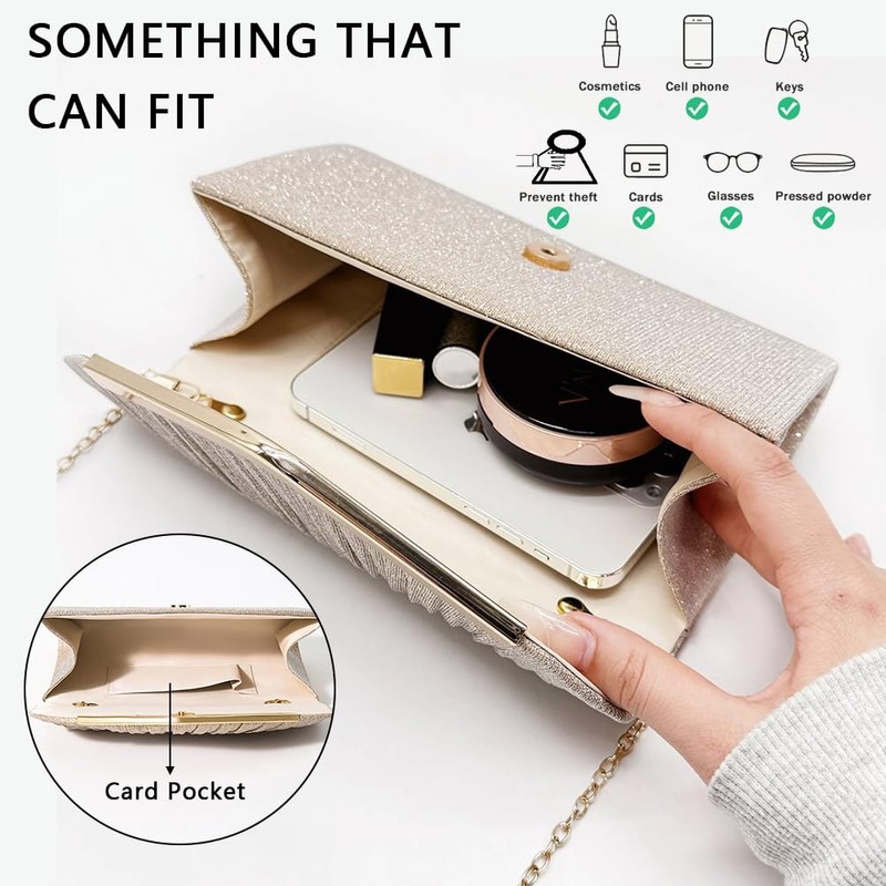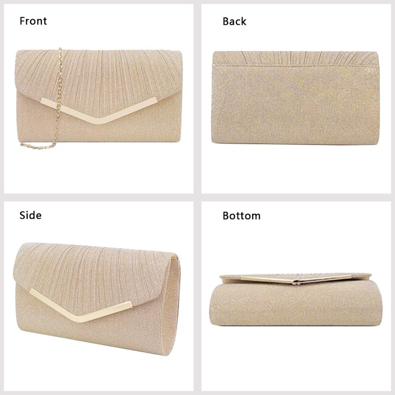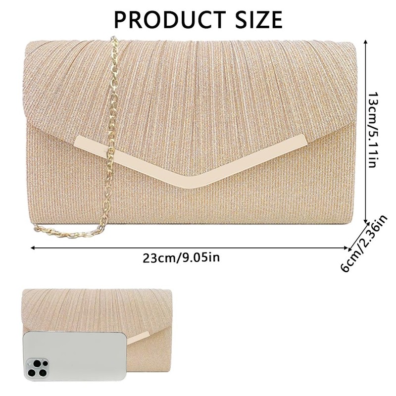 - APPLICATIONS With its modern and chic design, this clutch bag is ideal for fashion conscious women. It goes perfectly with a variety of outfits, from cocktail dresses to wedding dresses, and is a must-have for fashion-conscious women.