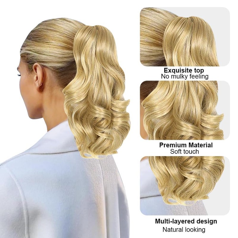 XFSRG Haarverlängerung Clip‑In Pferdeschwanz 12 Zoll Lockige & Wellige Ponytail Extensions Synthetisches Hitzebeständiges Haarteil für Voluminöse Pferdeschwanz‑Looks (Gold)