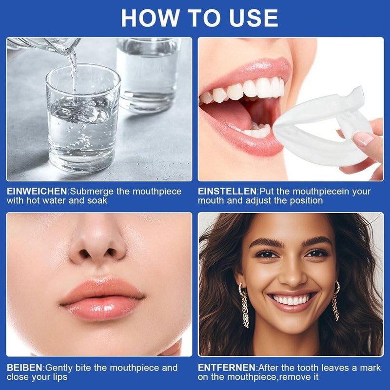 Dieser Bruxismus-Mundschutz ist besonders praktisch und erfordert keine komplizierte Anpassung – legen Sie ihn einfach vor dem Schlafengehen in den Mund. Das weiche medizinische Silikon sorgt für einen bequemen und sicheren Sitz, beugt Beschwerden vor und reduziert effektiv Zähneknirschen und Schnarchen.