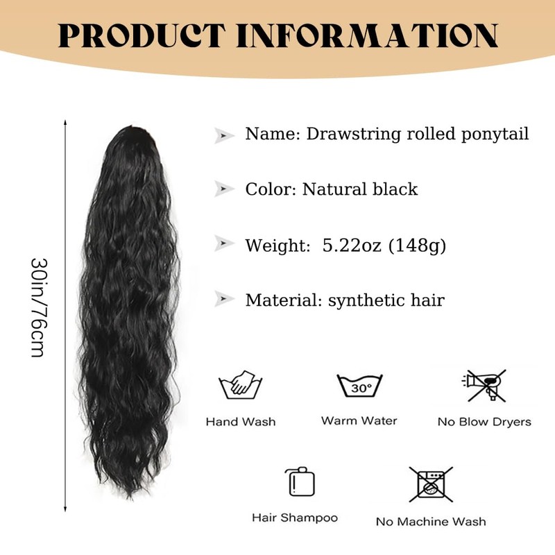 Our ponytail with drawstring is quick and easy to attach, just as fast as you would pull up your own hair into a ponytail. It is your best choice if you want to have a beautiful look without sweating, and you save time and money.