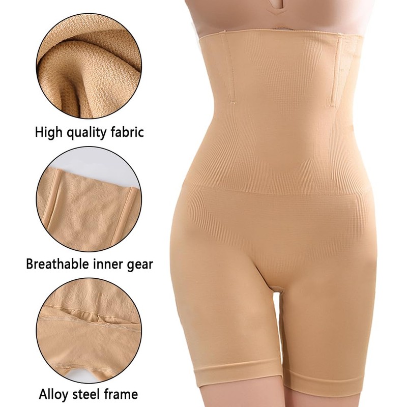 Hochwertiger Nylon-Elasthan-Mix mit Memory-Metallstäben ermöglicht 360° Rückformwirkung. Die damen unterhosen hohe taille bieten formgebenden Halt ohne Abzeichnen. Ultrahohe Taille glättet sanft den Bauch, hebt die Hüften und schützt Oberschenkel vor Reibung. Der feuchtigkeitsableitende Zwickel sorgt für trockenen Komfort als shapewear damen body.
