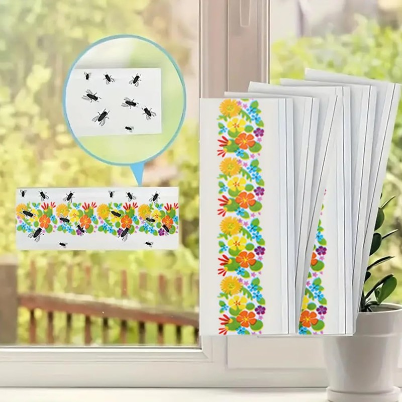 - SMALL DECORATIVE DESIGN This fly trap window sticker has a gorgeous floral pattern that blends perfectly with your home decor. The vibrant flowers around the edges are not only an effective fly control solution, but also add a touch of glamour to your windows.