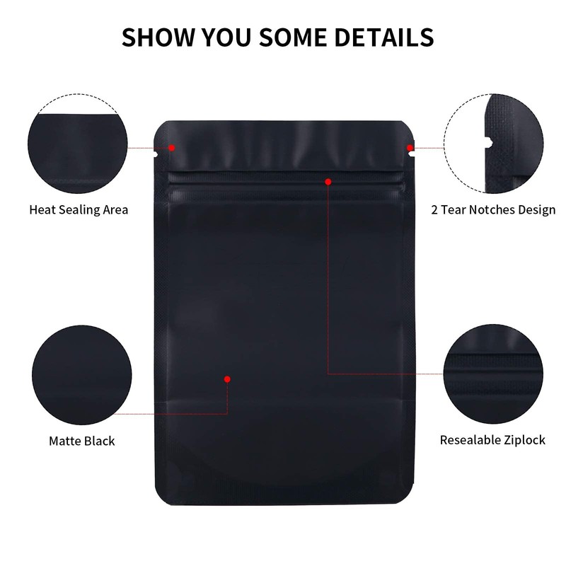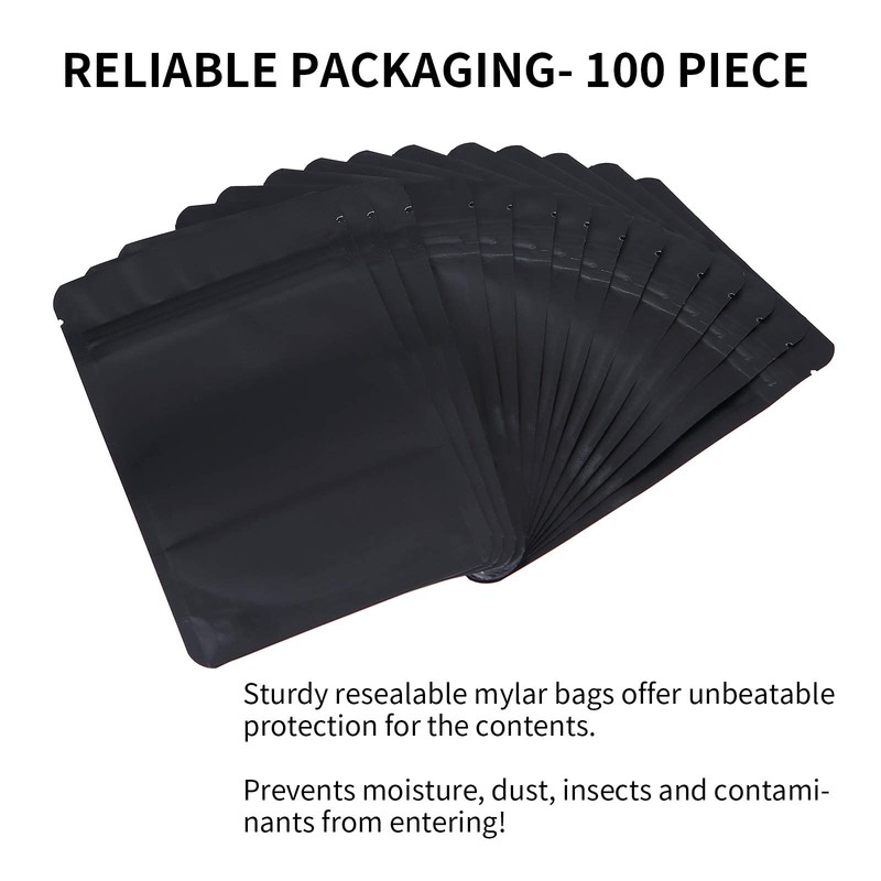 XFXIA 100 Pack Mylar Bags Smell Proof Bags, Foil Ziplock Baggies,Resealable Stand Up Packaging Pouch Bags for Food Storage,Candy,Cookie,Bath Salts (9cm * 13cm, Black)
