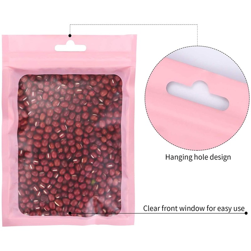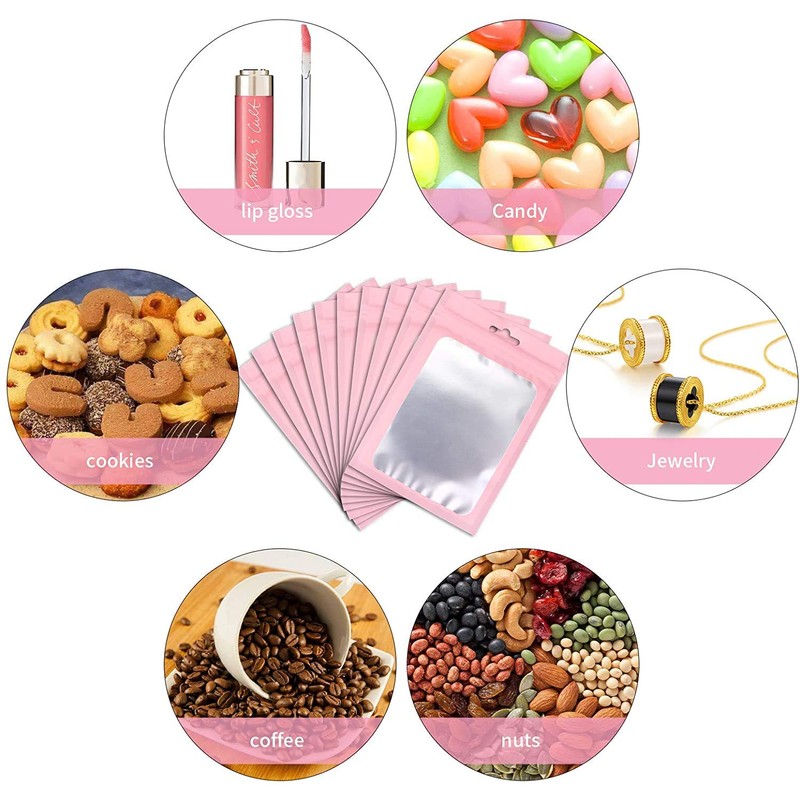 - Material and size: these resealable bags are made of polyethylene material and reliable material, you can put items in them safely; The Pink foil pouch bags with clear window ’s size is 2.72×3.93 inches and please note the available size is 2.32 x 2.73 inches