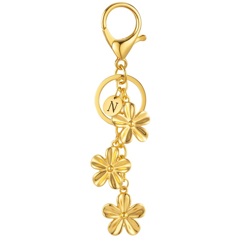 XGALBLA Gold Initial Keychain Gold Flower Charms for Key Cute Letter Keyring for Purse Handbag Backpack(N)
