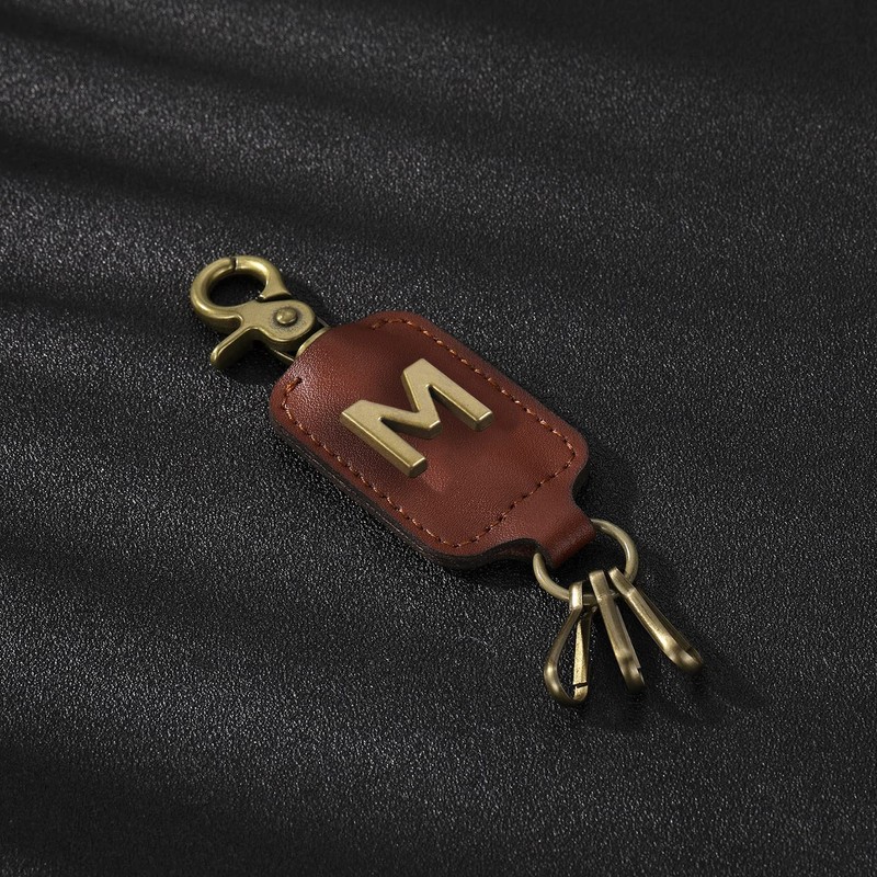 - Letter keychain : Initial letter keychain made of brown leather.These keychains make a beautiful accessory, easy to those hard to find keys, clip on car key, handbag, wallet and so on.