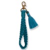 XGALBLA Llavero de macramé bohemio suave hecho a mano con borla de lava y roca para mujer, Azul celeste, M