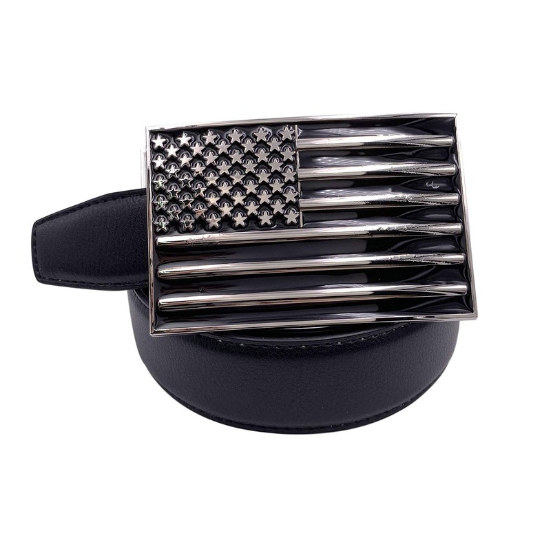 XGALBLA Mens Fashion Native American Flag Square Belt Buckle Black Enamel Medium
