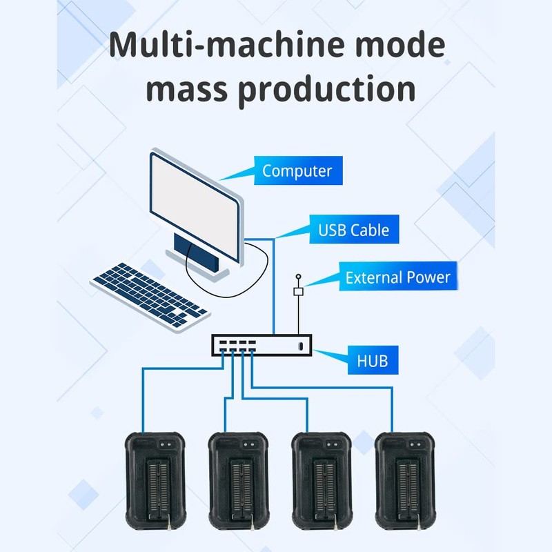 - Self-test function, self-test each pin of VPP/VCC/GND/IO * Suitable for developers and maintenance personnel, can do small batch production for high capacity chips, support simultaneously working with 4 programmers on each computer. *Support operating systems: Windows XP,2003,2008,Vista Win7 WIN8 WIN10 WIN11
