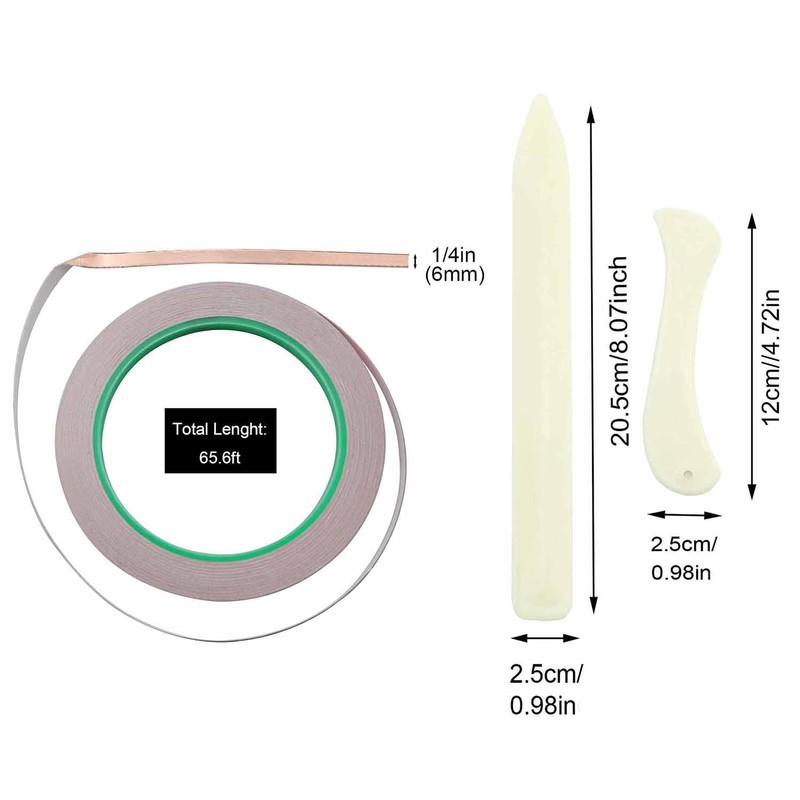 - Amplias aplicaciones: nuestra cinta de cobre es muy flexible y se puede utilizar en diferentes formas y curvas de hojas de vidrio, por lo que es ideal para vidrieras, reparaciones eléctricas, conexión a tierra, circuitos de papel, soldadura, reparaciones de guitarra y fabricación de manualidades.