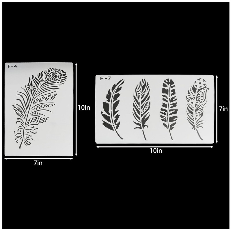 • Easy to use: Each feather wall template has feather intervals, you can use spray paint to spray the design where you want, which is convenient for you, and each template has a round hole at the top, you can put the feather template together through a metal opening ring when it is not needed, which can save you space.