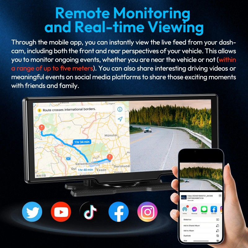 【Easy Set Up & Universal Compatible】 It is very easy to set up this car HD DVR portable car screen, you don’t need to disassemble any part of the car,don’t need connect complicated and confused wires, wireless connection in 5 minutes. and this portable car radio carplay with cigarette lighter power supply, supports all vehicles with 7-32V including cars, bus, truck,trailer,motorhome,van...etc. so recommended for any cars that doesn't come with carplay or Android auto to have all the features of