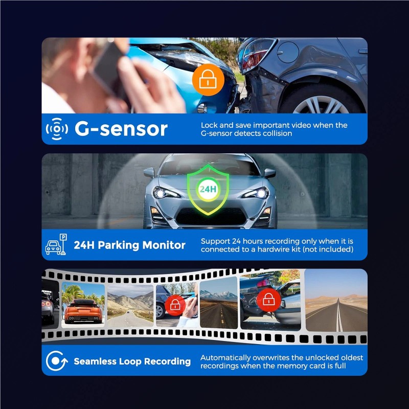 - Parking Mode: Support 24 Hours Parking Monitoring