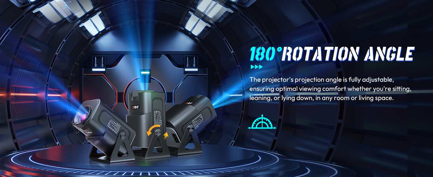 180° rotatable/portable: The 180-degree rotating stand lets you place the image anywhere from floor to ceiling, giving you the flexibility to play videos.