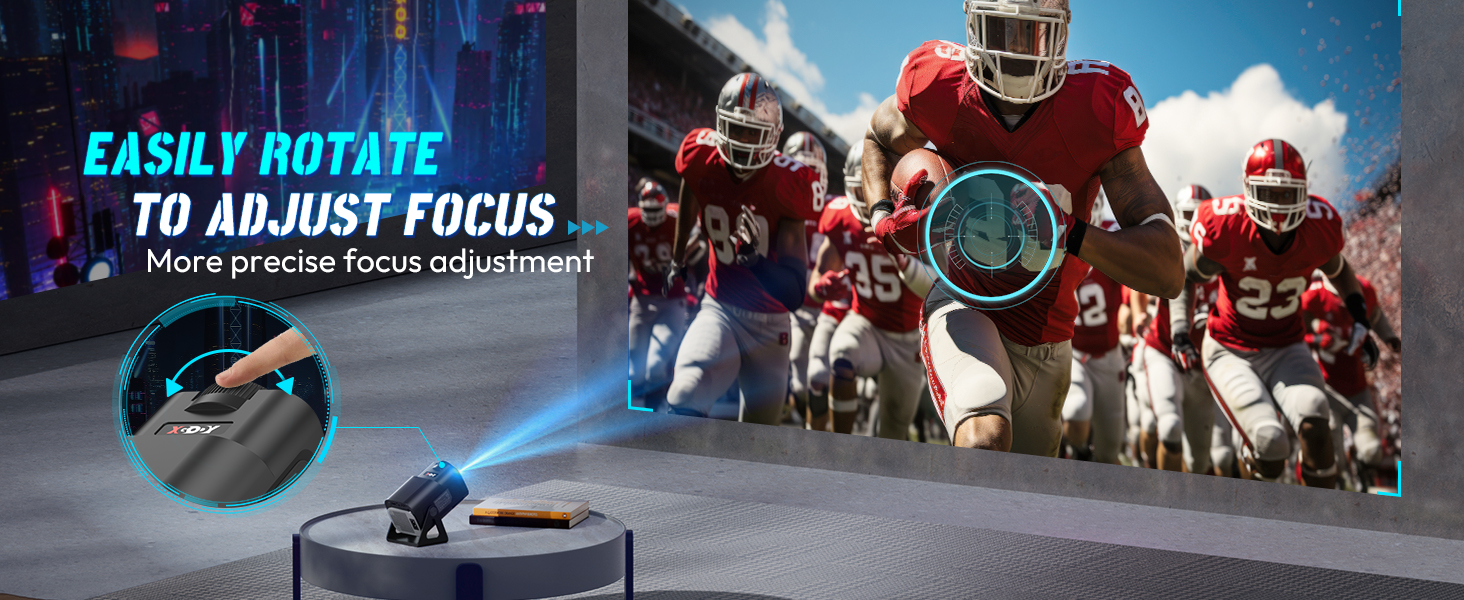 The XGODY Gimbal 5 mini projector with charging cable and 180° rotation is portable and can be used for various purposes. (You just need to put it in your backpack bag or travel case), E.g. when camping, traveling or at outdoor parties. Thanks to the mini size of 14.6 x 9.6 x 8.6 cm and the net weight of 500 grams, it is perfect for carrying.