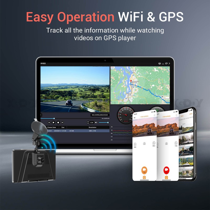 【Wifi & App】Simply tap the "Wifi video" icon to easily view your driving records. Follow the prompts to establish a wireless connection, download the screen software by scanning the code, and access your driving records directly on your phone. Please note that this feature is limited to the car player's range and cannot be accessed remotely over long distances.