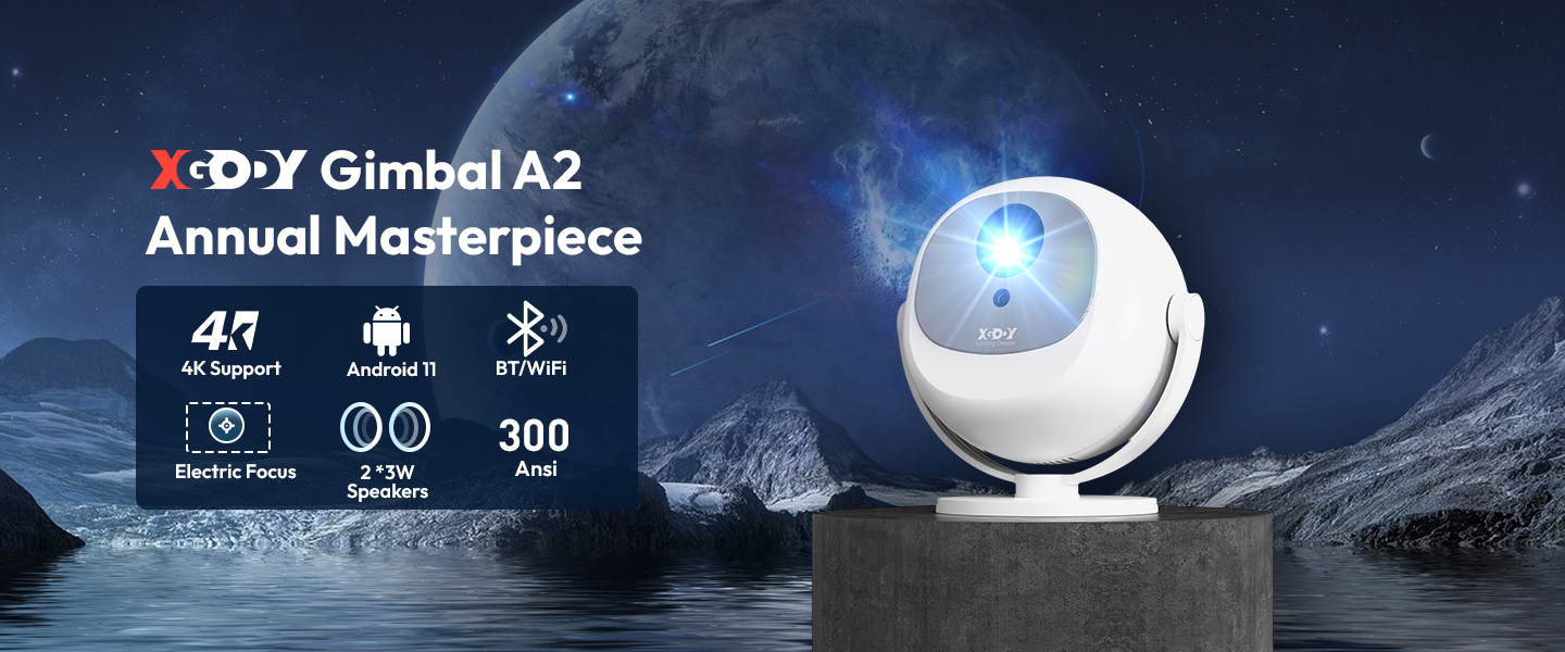 XGODY Gimbal A2 home projector is a real 720P full HD projector with an original resolution of 1080*720 and supports 4K. 300ANsi and 20000:1 high contrast ratio. Adopts HDR10 high dynamic range video decoding, and the picture details are richer. 4K video can be played directly, ultra-detailed presentation. Whether indoor or outdoor, there is a good HD projection experience.