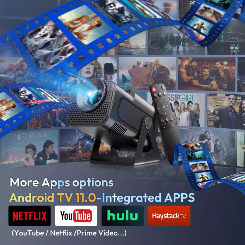 🔥【The Freestyle Projector】latest projector features Android TV 11.0 OS . Equipped with 1GB+8GB ROM storage, it can stream movies, shows, live sports and music freely. You can always enjoy video fun without additional media players.