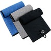 Xgunion 3 Pack Tri-fold Golf Towel for Golf Bags with Carabiner Clip, Premium Microfiber Waffle Pattern Golf Towel for Men Women (Black/Gray/Blue)