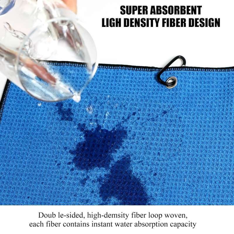 - WATER ABSORBENCY: Natural light golf towel is made of premium microfiber material, which absorbs less water than cotton. golf towel is washable and colorfast. Soft material can protect your hands. It's the best partner for you in the golf field.