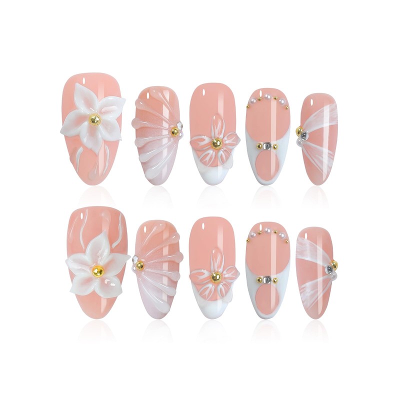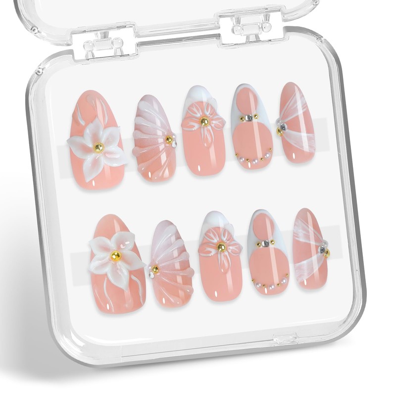 XGV Custom 3D Press on Nails Kit - Handmade Designs Arylic Fake Nails for Bridal Showers & Anniversaries