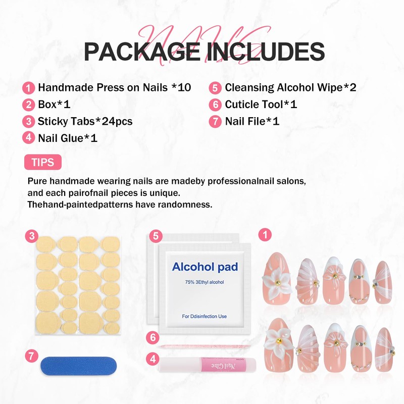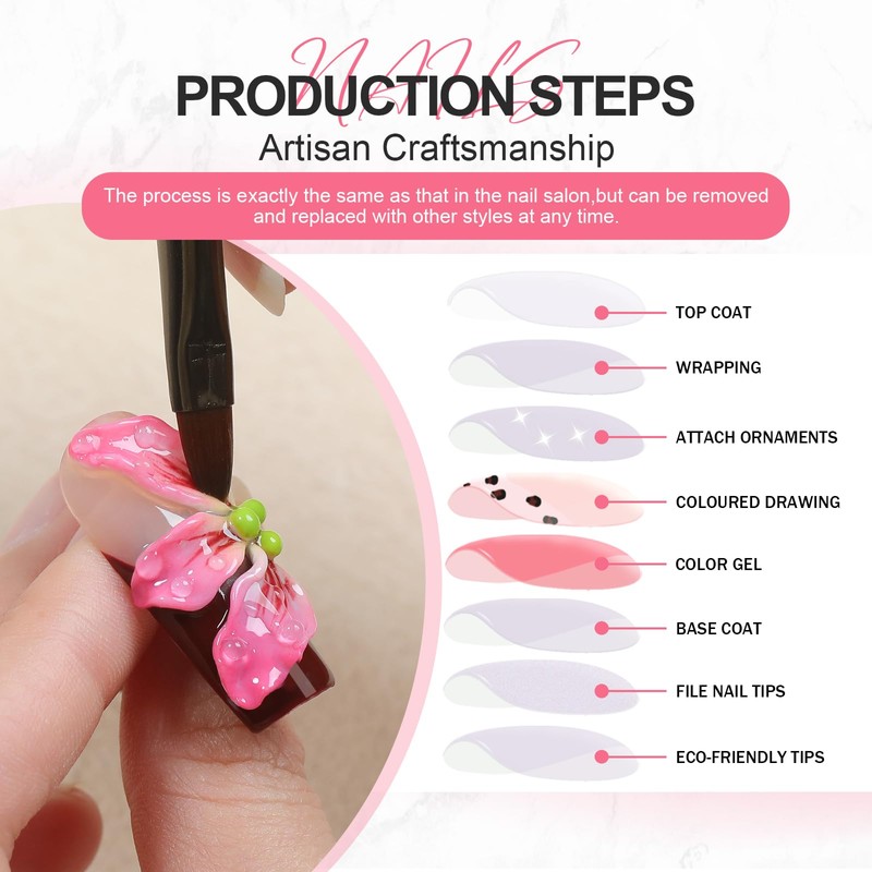 - 【100% Handmade Nails】Each handcrafted nail is a one-of-a-kind masterpiece. Designed and crafted by skilled artisans using advanced 3D technology. Free from irritating chemicals, safe and harmless to natural nails.