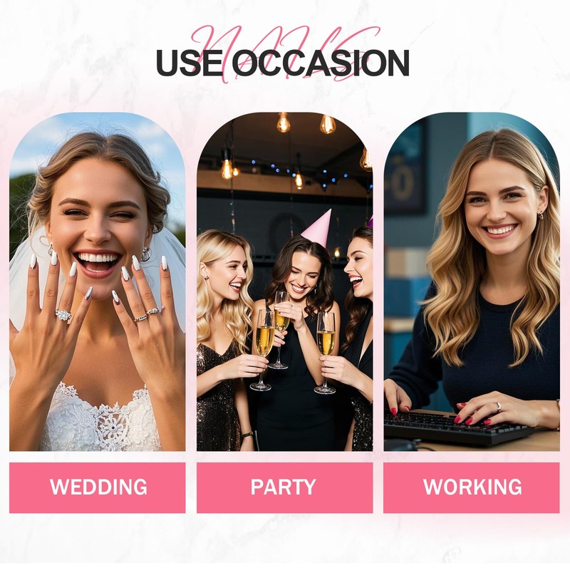 - 【Easy Application】Achieve salon-quality nails from the comfort of your home! Our gentle adhesive pads are reusable and support quick application/removal—effortlessly matching your mood or occasion.