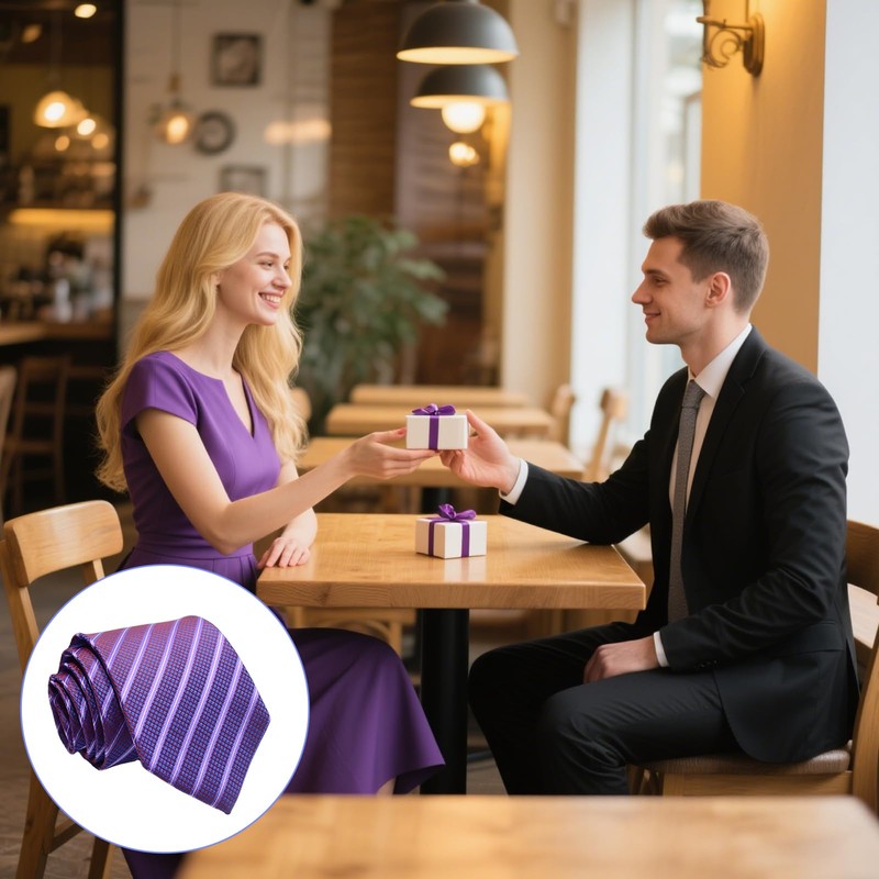Xgvzs 1PCS Men Ties Business Tie Cuff Set Formal Wedding Used for Tooling for Men Boyfriend Gift Sets (PurpleStripes)