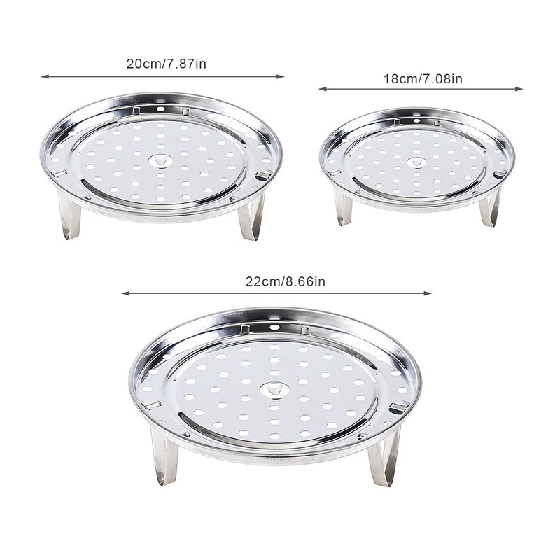 - THREE SIZES: Package includes 3 stainless steel steaming racks with diameters of 18cm, 20cm, and 22cm. They can be stacked to make more delicious steaming food!