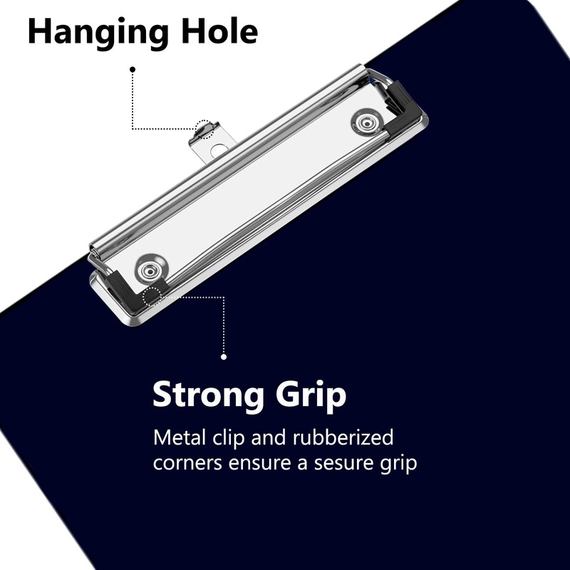 - Easy to Use: The clipboard clips is flexible and strong, keeps your paper firmly clipped it place and easy to clip on and take off, and rounded edges provide a pleasant grip. The top is designed with a hanging ring, which is easy to hang on the wall.