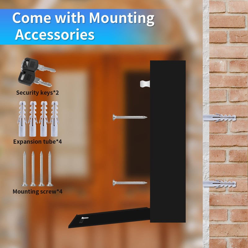 - 【Easy to Install】— This universal modern mounted mailbox can easily and securely hang on the wall, shed, gate, or garage. The mailbox comes with pre-drilled holes and mounting screws set for easy installation.