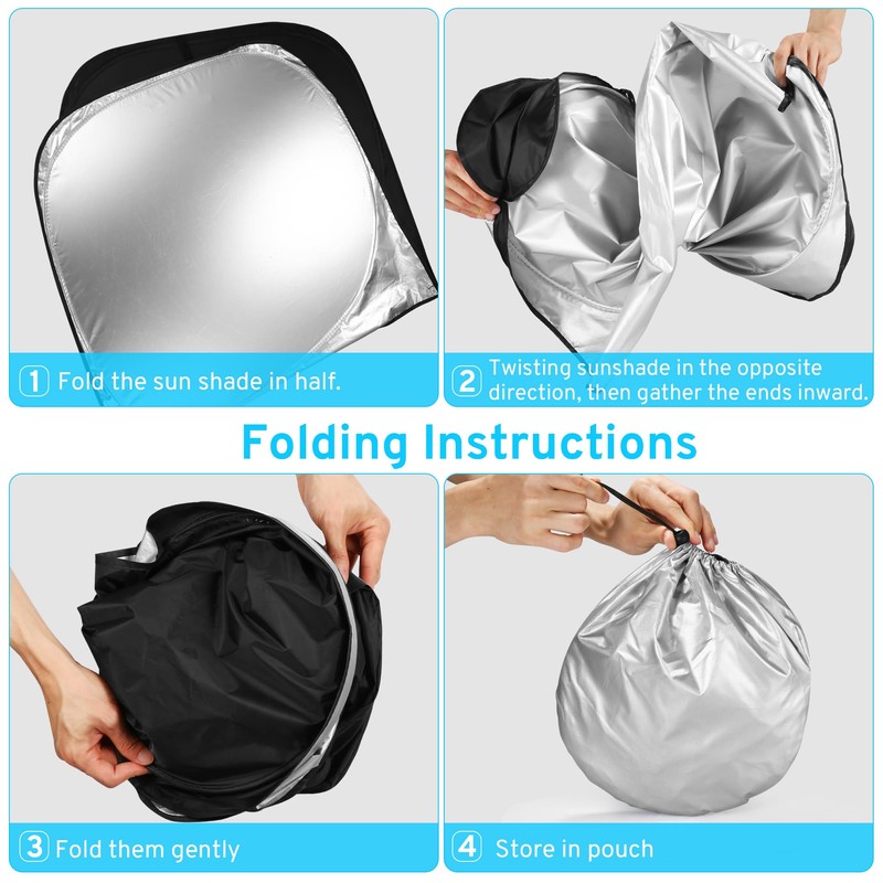 - 【With a storage bag】Twist and fold into a circle and put in the bag. Takes minimum space to store in your vehicle . About the ways of how to fold, please refer to our pictures or video.