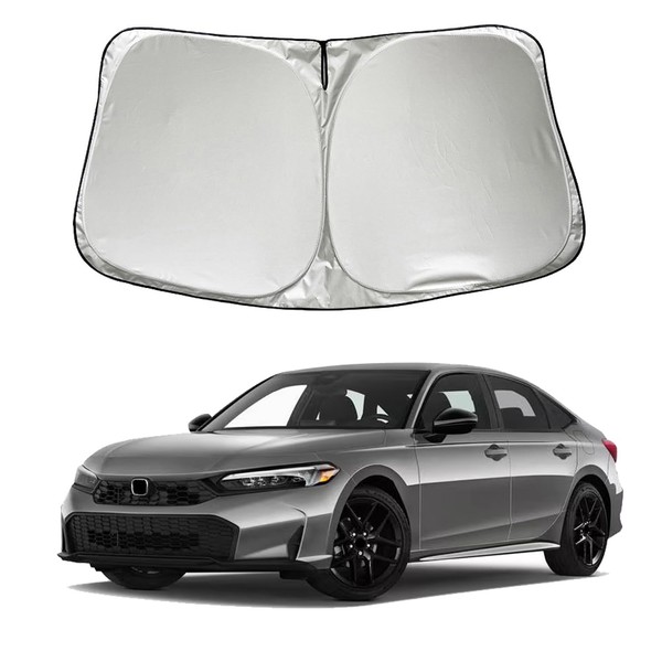 - 【Must-Have accessories for Honda Civic】: The front windshield sun shade compatible with Honda Civic (2022-2025). Precise fit design and Reinforced steel rings make enough to make the shade fit precisely to the window, no need to use suction cups to hold it in place. It won't sag or collapse like other car heat shields. Essential accessories for your car in summer.
