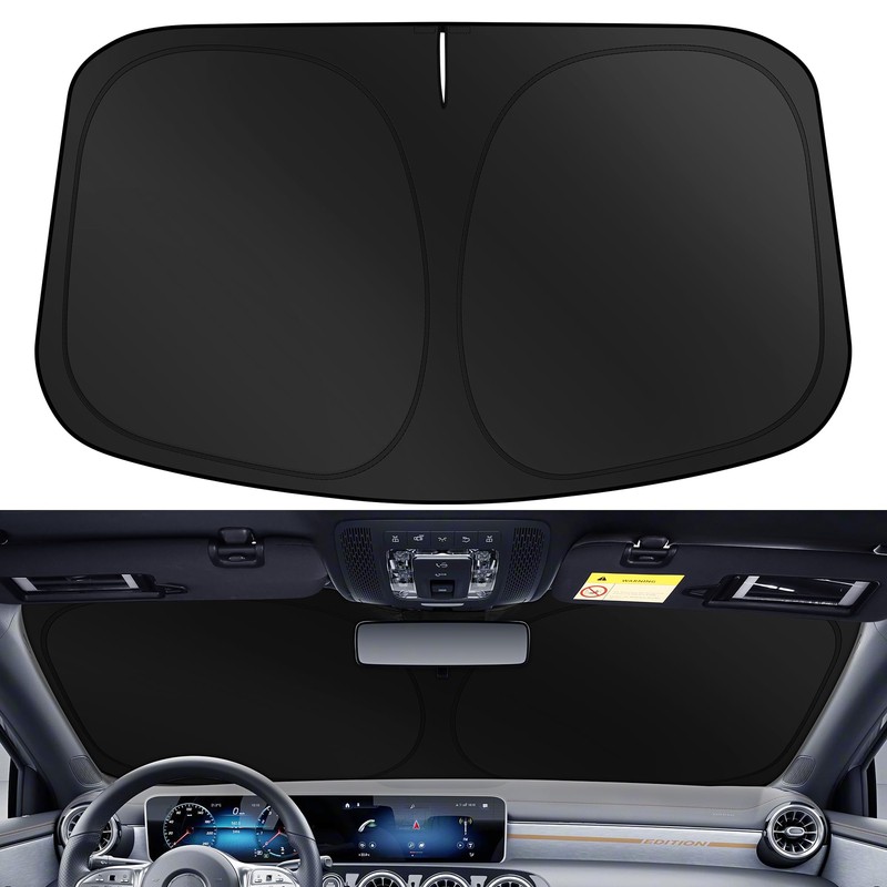 - 【Easy To Use and Store】: Unlike other products on the market, We use a Lightweight collapsible sun visor design. The car front window sunshade can be easily popped up and folded in seconds for daily use. You can easily tuck the windshield cover sun shade into your door pocket.