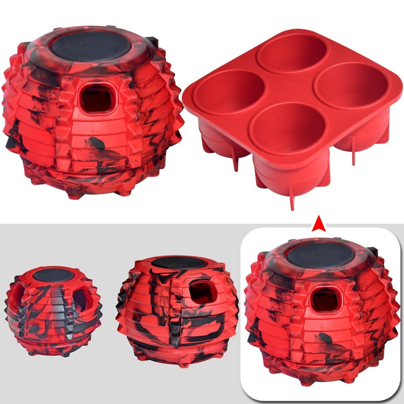 XHX Dog Toy, Durable Large Dog Toys, Freezable Fillable Rubber Dog Toys, Interactive Dog Puzzle Play Toy, Stopper+Silicone Treat Tray (Large, Red and Black)