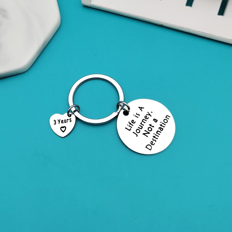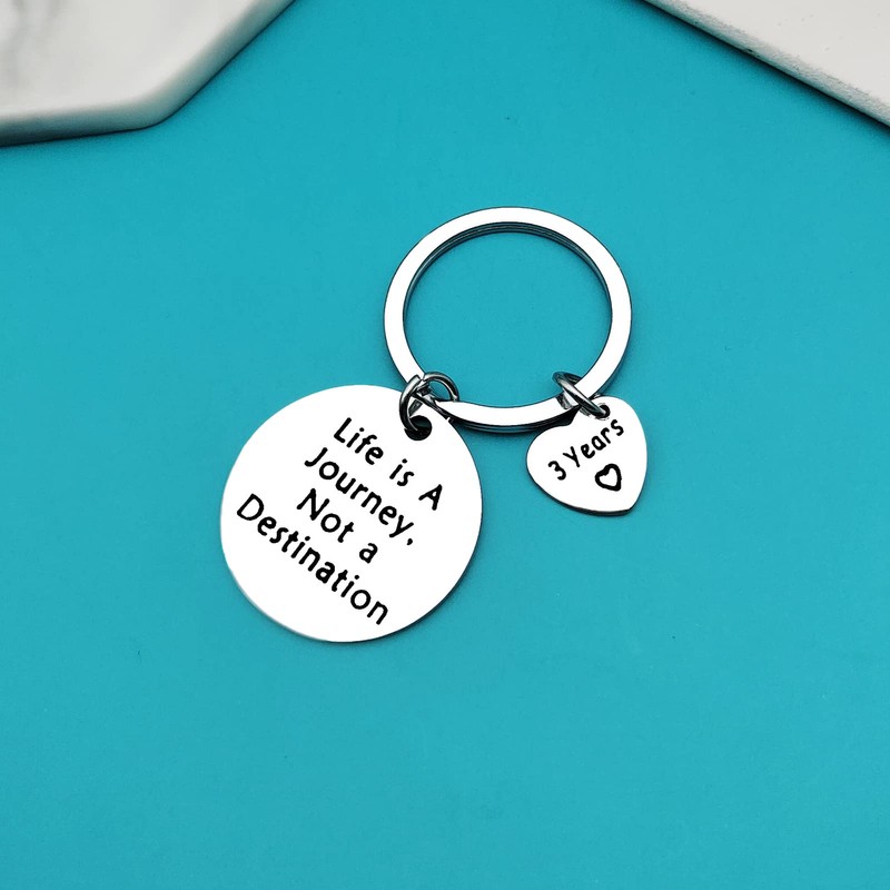 • Sobriety Keychain: Engraved with “Life is A Journey, Not A Destination”. Congratulations on beating the alcohol or other addiction for 3 years, you deserve a medal for your hard work. This keychain would perfect to be a medal. Hoping you to know that life is journey not a destination, enjoy the journey as you can.