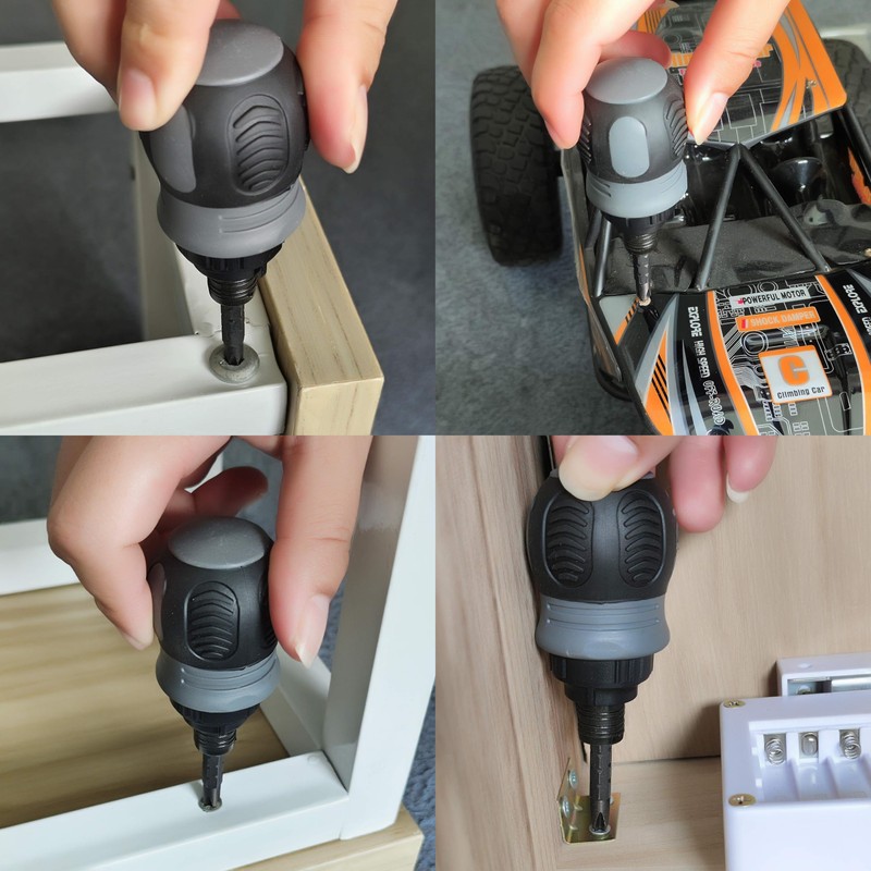 • Hexagon socket fixing; It can rotate forward and backward to quickly disassemble the screwdriver rod; The screwdriver rod is designed with a clamping slot, and the length of the screwdriver rod can be adjusted by pressing the interface; The size of the hand grip is appropriate, and it is easy, convenient and fast to use.