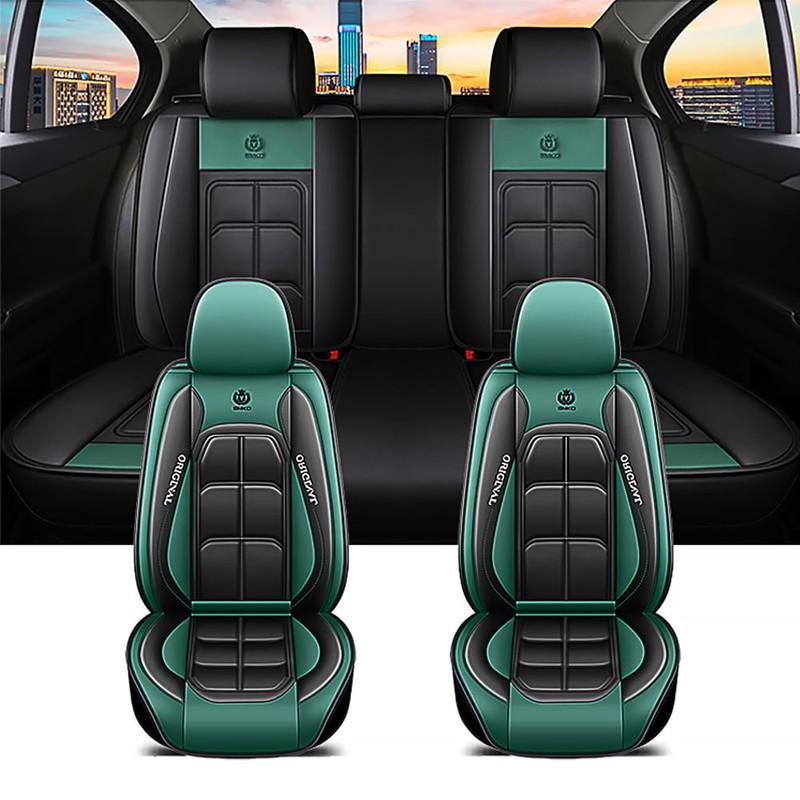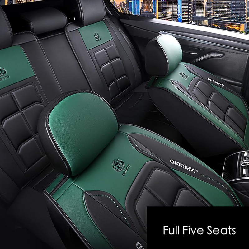 XIANGTA Universal Fit Car Seat Covers,5 Seat Leather Car Seat Covers Full Set, Universal Fit Waterproof Auto Seat Protector, Full Coverage for Cars SUVs Sedans – Green