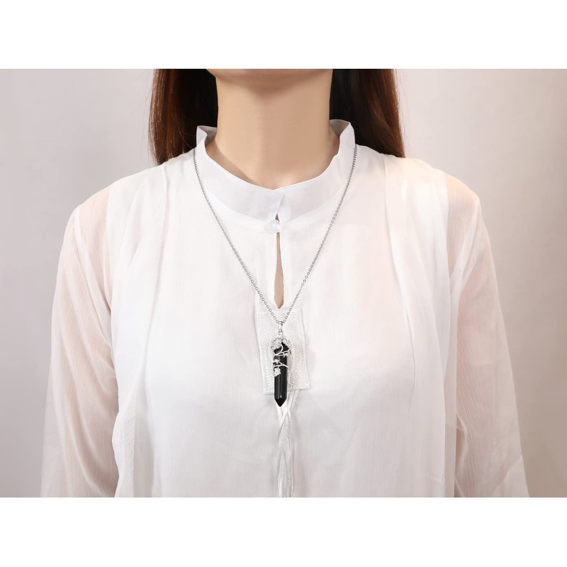 - [SPECIFICATION]:Necklace Chain: 24 inches (60cm). Flower Wrapped Crystal Point Pendant: 52mm*15mm. Weight: about 15g. Material: natural crystal stone & Stainless steel.