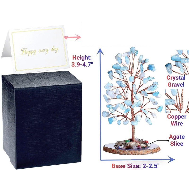 - [AQUAMARINE CRYSTAL TREE OF LIFE] - Aquamarine gemstone is nurtured at the bottom of the sea and is the essence of seawater,a symbol of composure,courage and intelligence.Aquamarine corresponds to the throat chakra,which can increase surrounding positive energy,purify the irritable mind.Healing crystal tree represents good luck,wealth and health,ideal indoor decoration,you can place it on your desk,office,bedside table,living room.