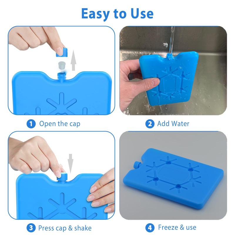 - Simple to Use:Just add water, freeze overnight, and you're ready to use. Not like ice,The ice packs don't make a mess as they thaw and will stay frozen for longer