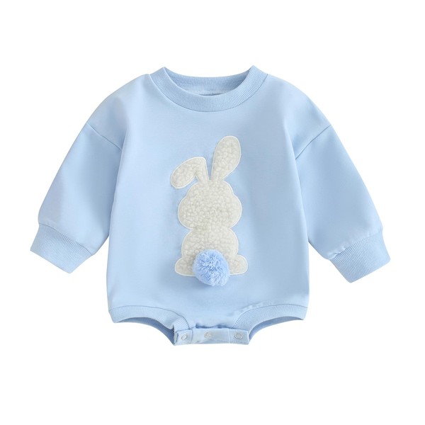 Xiaodriceee Newborn Baby Boy Easter Outfit Bunny Long Sleeve Sweatshirt Romper Bubble Bodysuit Fall Winter Clothes (A-Blue, 0-6 Months)