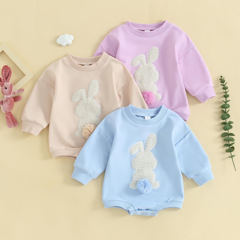 - DESIGN: Baby girl easter outfit, baby boy easter outfit, my first easter baby girl outfit, my first easter baby boy outfit, baby easter sweatshirt romper, long sleeve bunny romper bodysuit, crewneck pullover sweatshirt, baby girl boy bunny fuzzy bodysuit with a 3D pompoms tail design, easter outfit baby girl, toddler boy easter outfit, gender neutral baby clothes, baby girl boy spring outfit, your baby girl boy will love it!