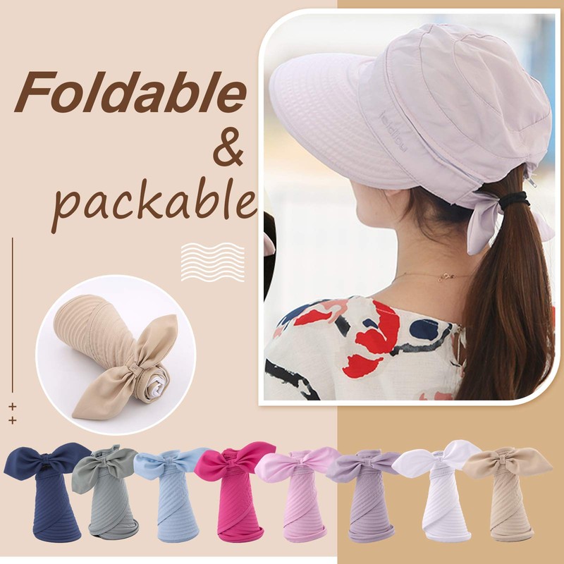 XIAOHAWANG Women Sun Visor Hats UPF 50+ Wide Brim Summer Caps UV Protection Ponytail Hat Detachable Beach Cap (A-light blue, one size)