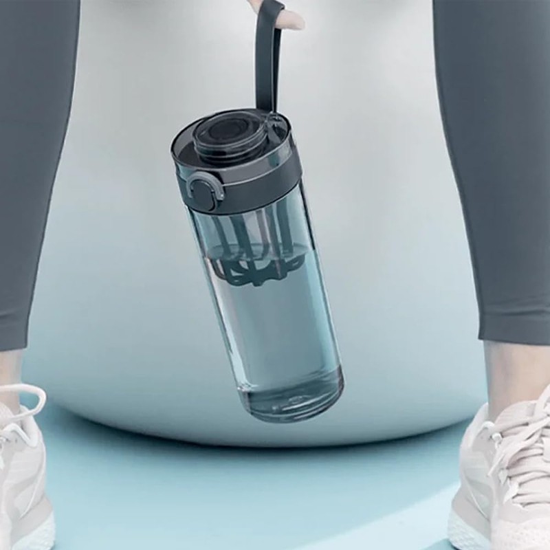 Xiaomi Tritan Water Bottle 600ml, BPA-Free Portable Cup with Tea Strainer & Leak-Proof Lock, One-Hand Operation, for Travel/Sports (Dark Grey)