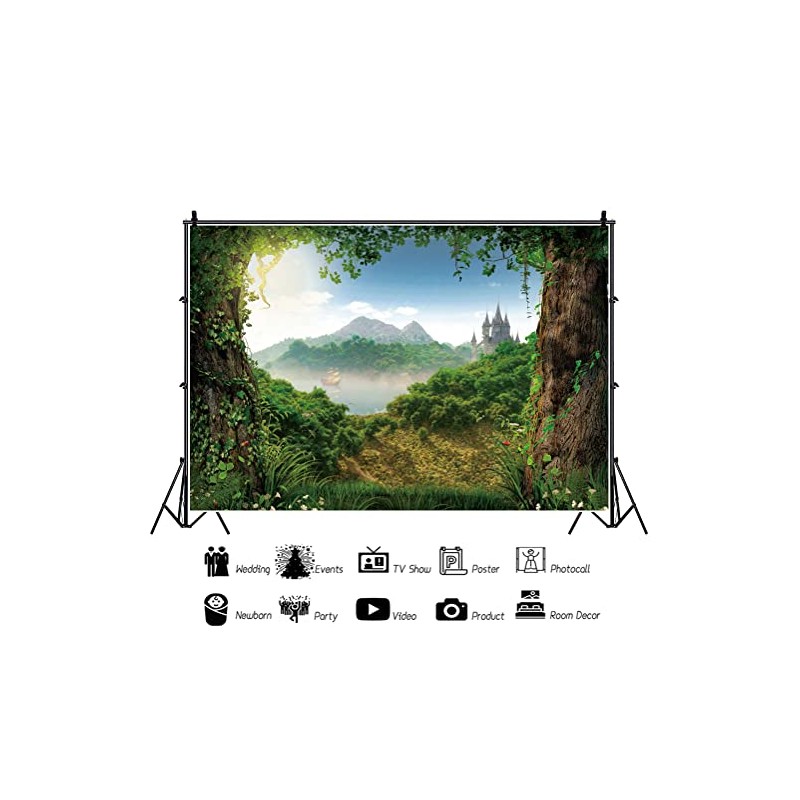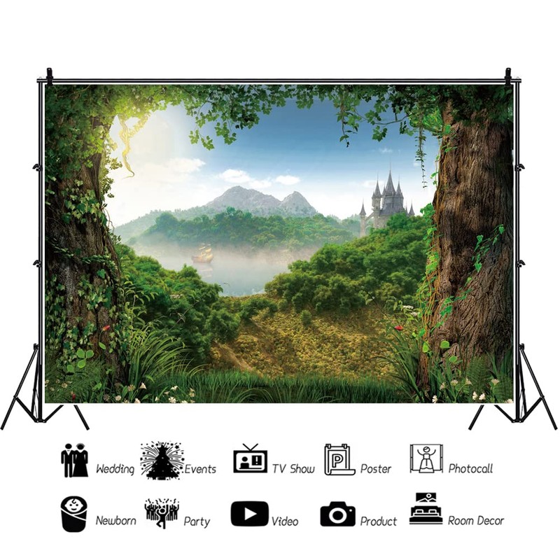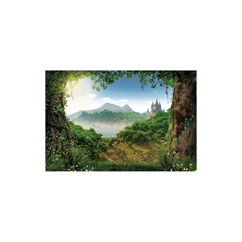 Xiaoterna 3 x 2 m Forest Backdrop Spring Enchanted Forest Photography Background Fairy Tale Misty Forest Castle Mountain Lake Sunrise Wonderland Background Portrait Photo Studio Props